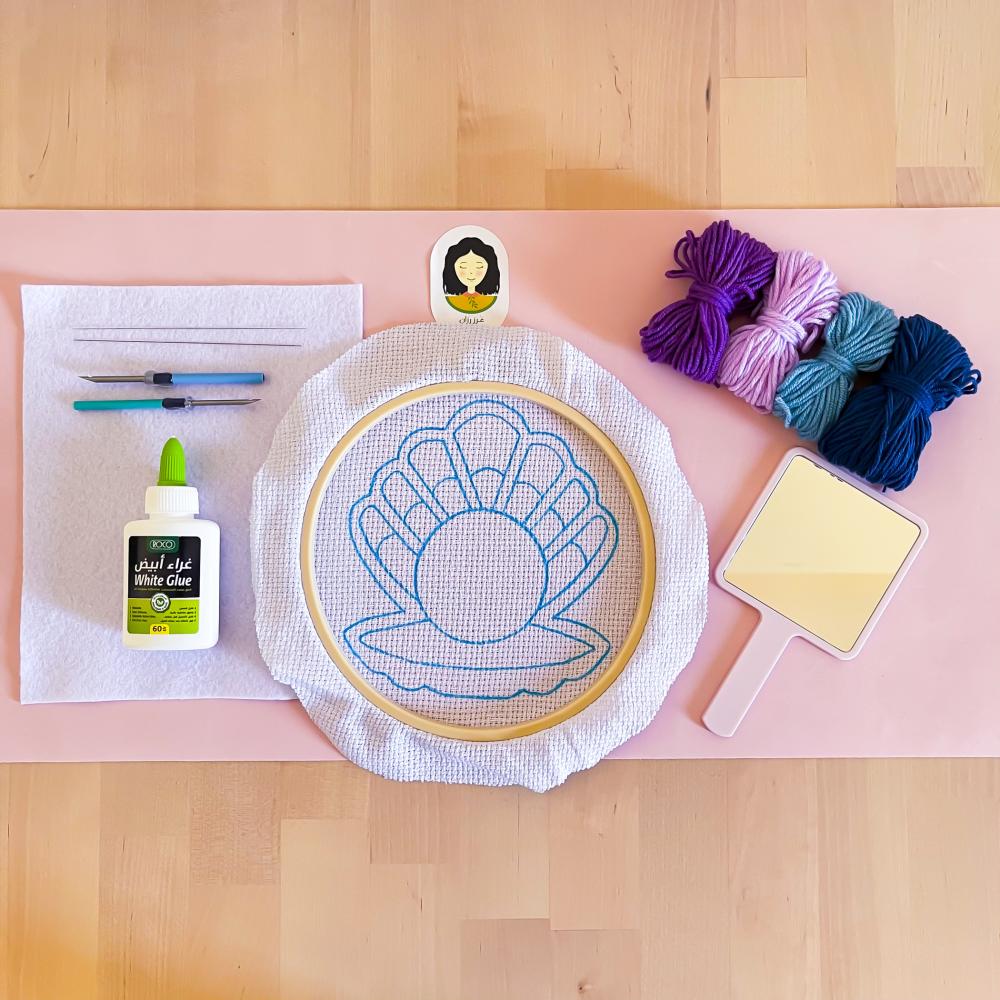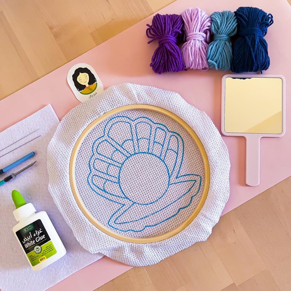 (تطريز إيرة النفاش شكل صدفة / قناة: رزان الدوخي)